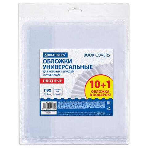 Обложки ПВХ для рабочих тетрадей и учебников, КОМПЛЕКТ 10 шт. + 1 в подарок, ПЛОТНЫЕ, 110 мкм, 270х485 мм, BRAUBERG, 274110