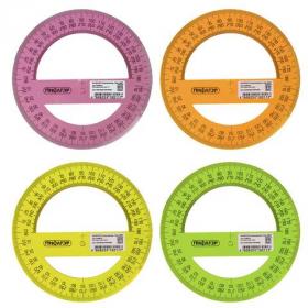 Транспортир 12 см, 360 градусов, ПИФАГОР, прозрачный, неоновый, ассорти, 210621