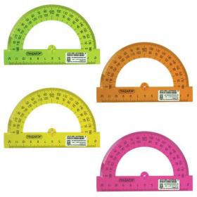 Транспортир 12 см, 180 градусов, ПИФАГОР, прозрачный, неоновый, ассорти, 210622