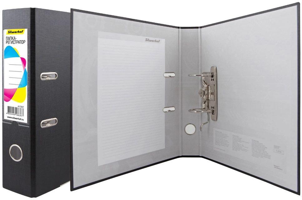 Папка-регистратор Silwerhof A4 75мм ПВХ / бумага черный мет.окант. сборная (упак.:2шт)