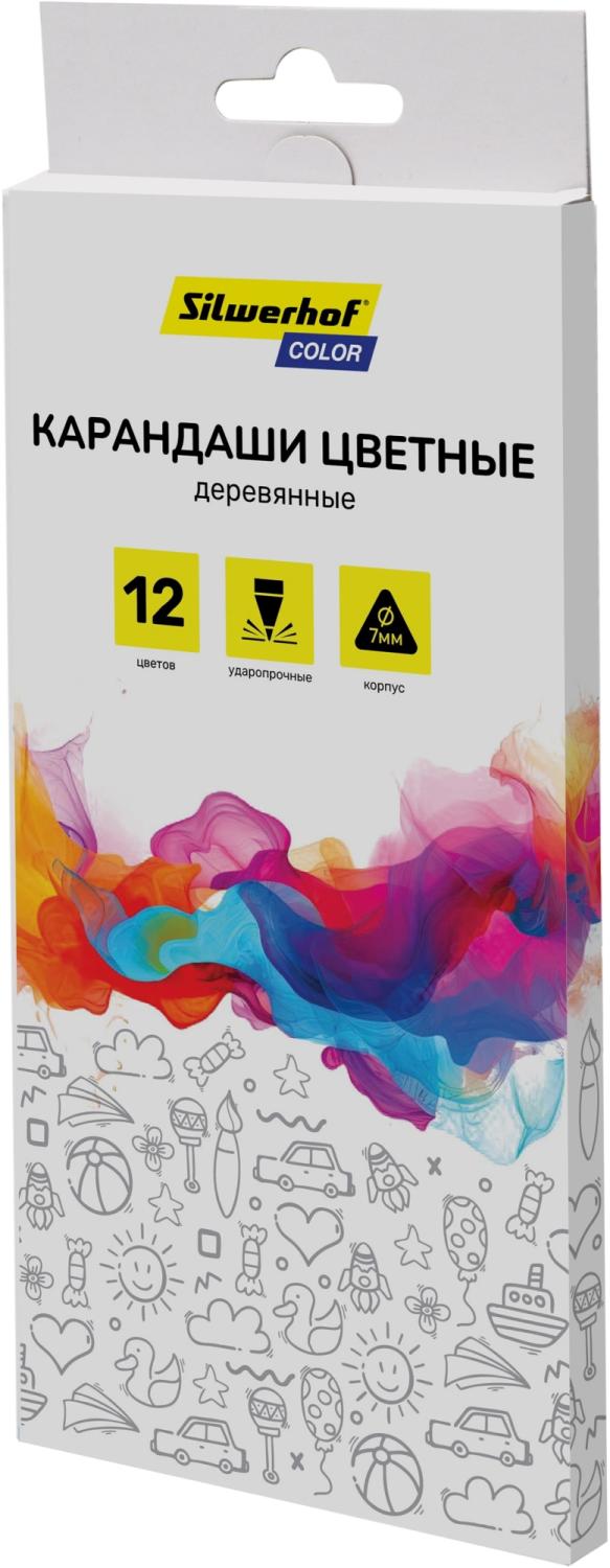 Карандаши цв. Silwerhof Color 2.65мм трехгран. дерево ассорти 12цв. коробка / европод.