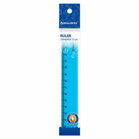 Линейка пластиковая 15 см, BRAUBERG "NEON", ассорти, пакет, 210750
