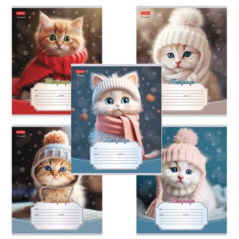 Тетрадь 12 л., HATBER узкая линия, обложка картон, "Уютные котики" (микс в спайке), 075154, 12Т5В7