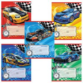 Тетрадь 12 л., HATBER, косая линия, обложка картон, "Спортивные авто" (микс в спайке), 013954, 12Т5В6