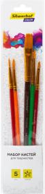 Набор кистей Silwerhof Color синтетика (наб.5шт) синт.круг.№3 / плос.№2,6,14 / овал.№1