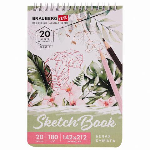 Скетчбук, белая бумага 180 г / м2, 142х212 мм, 20 л., гребень, твердая обложка, BRAUBERG ART CLASSIC, 112992