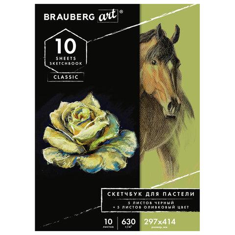 Альбом для пастели, картон ЧЕРНЫЙ+ОЛИВКОВЫЙ 630 г / м2, 297x414 мм, 5+5 листов, BRAUBERG ART CLASSIC, 105924