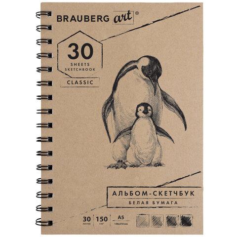 Скетчбук, белая бумага 150 г / м2, 148х210 мм, 30 л., гребень, BRAUBERG ART CLASSIC, 128950