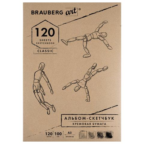 Скетчбук, слоновая кость 100 г / м2, 297х420 мм, 120 л., прошивка, BRAUBERG ART CLASSIC, 128959