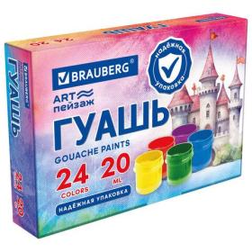 Гуашь BRAUBERG "ЗАМОК" 24 цвета по 20 мл, надежная упаковка, 192689