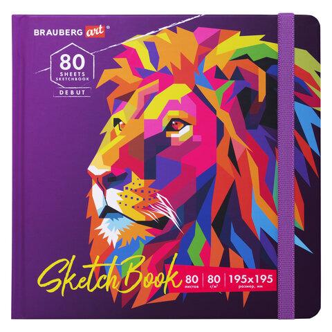 Скетчбук, белая бумага 80 г / м2, 195х195 мм, 80 л., резинка, твердый, BRAUBERG ART DEBUT "Лев", 114582