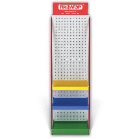 Стойка для размещения товара напольная ПИФАГОР, 2050x600x500 мм, 25 крючков, 3 полки, металл, 504878