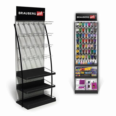 Стойка для размещения товара напольная BRAUBERG ART, 2050x600x500 мм, 35 крючков, 3 полки, металл, 504875