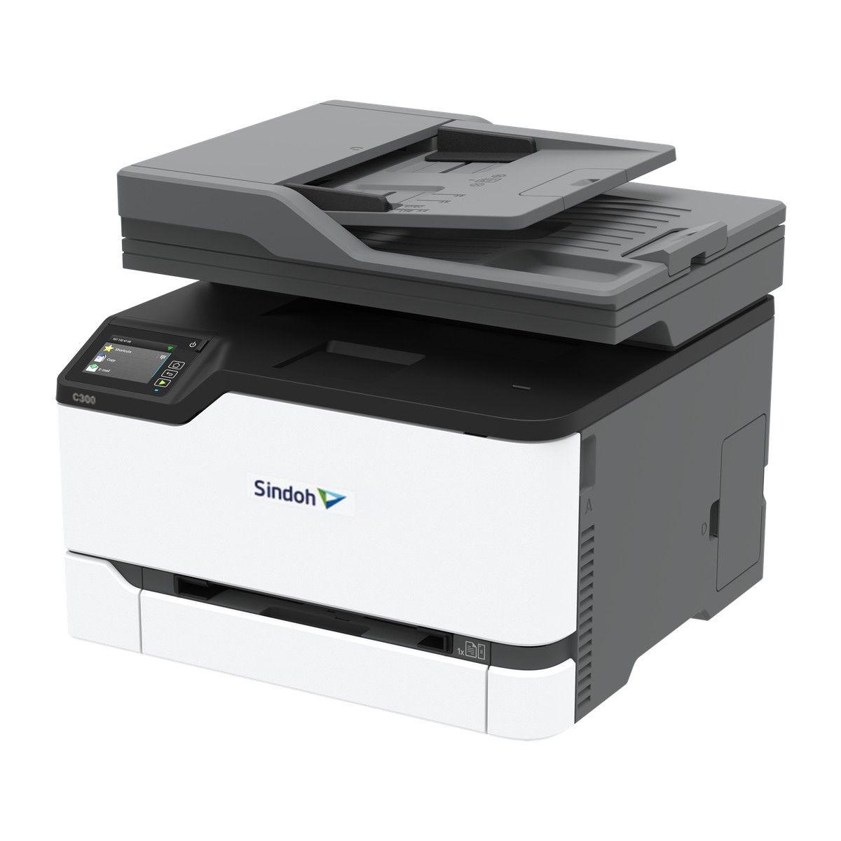 МФУ Sindoh C300 принтер / копир / сканер / факс. 24 стр / мин А4 цветная печать / копирование, 2400x600 dpi Сканер цвет А4 до 90 изобр / мин. CPU 1ГГц, 2 Ядра, 1 Гб RAM, Ethernet, USB, USB-host, Wi-Fi. PCL, PS3, PDF. ADF 50 л, стартовые тонер-картриджи на 1500 отп. ч