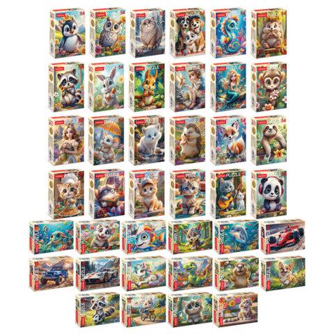 Пазл картонный 54 элемента "ОЧАРОВАТЕЛЬНЫЕ МОРДАШКИ", АССОРТИ, 40 видов, 175х130 мм, HATBER