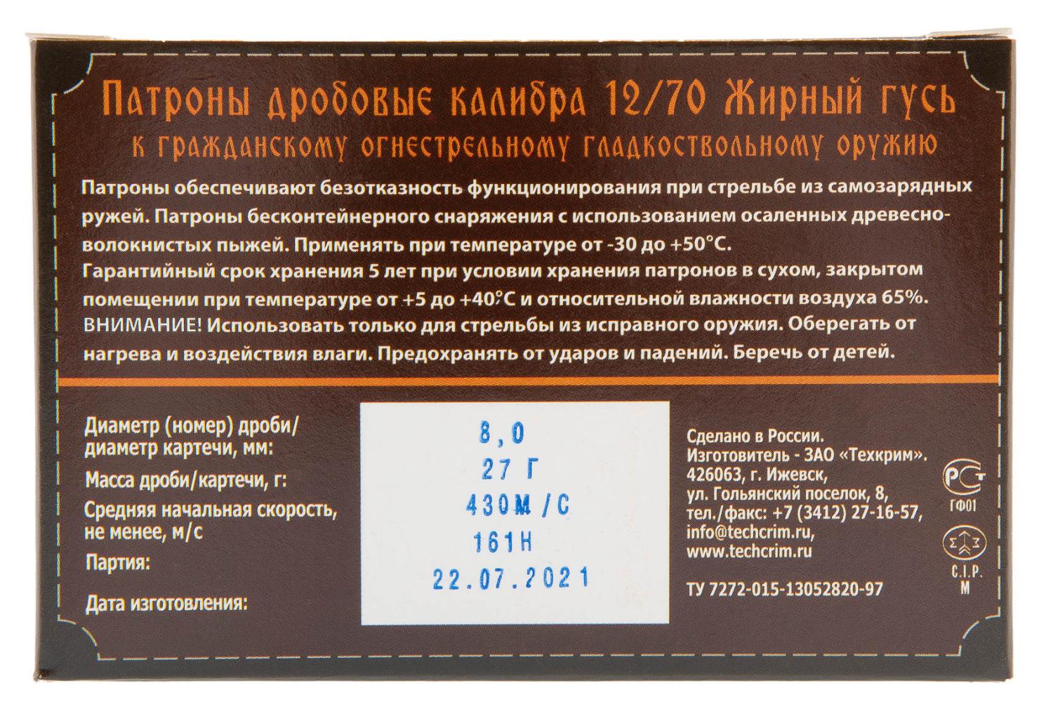 12/70 Картечь 80мм Жирный гусь Техкрим ** / 4dealer.ru