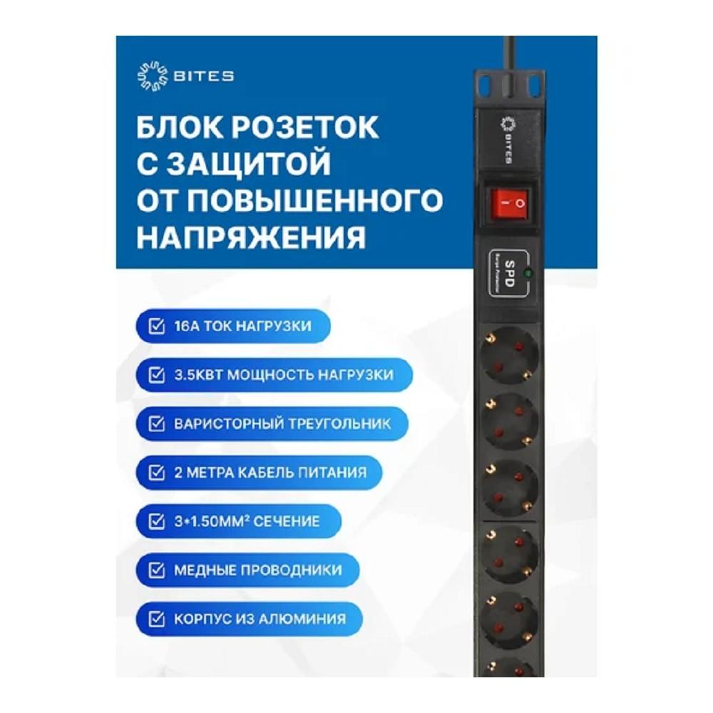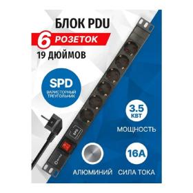 5bites PDU619A-06 Блок розеток 6S / AL / SWITCH / 1U / 19" / 2M*3G*1.5MM2 / VDE / 4dealer.ru