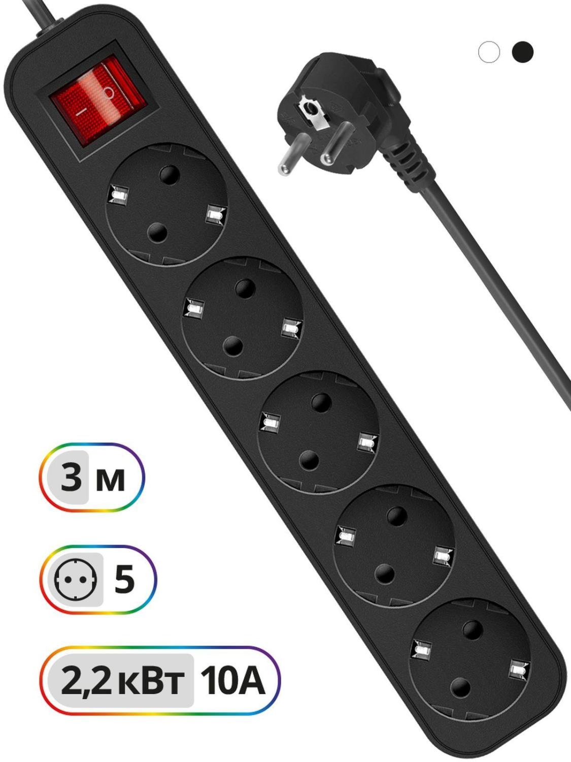 99342 Удлинитель с заземлением Defender G530 Выключатель 3.0м 5 розеток