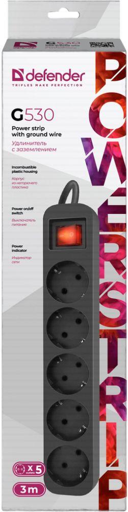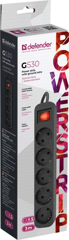 99342 Удлинитель с заземлением Defender G530 Выключатель 3.0м 5 розеток / 4dealer.ru