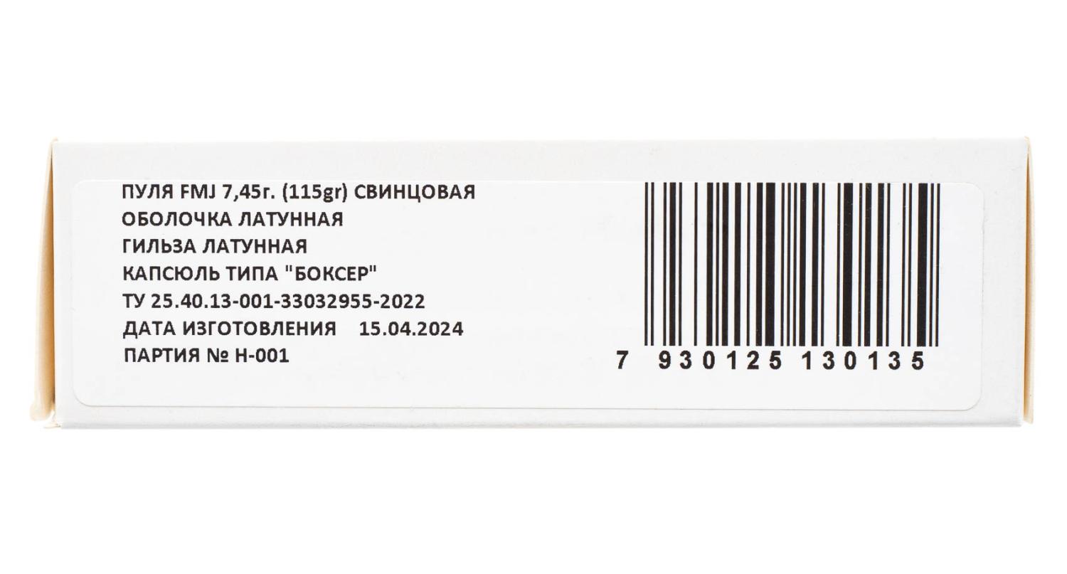 9x19 Дозор (GM) "H" гильза лат. FMJ лат. об. 7.45г. / 4dealer.ru
