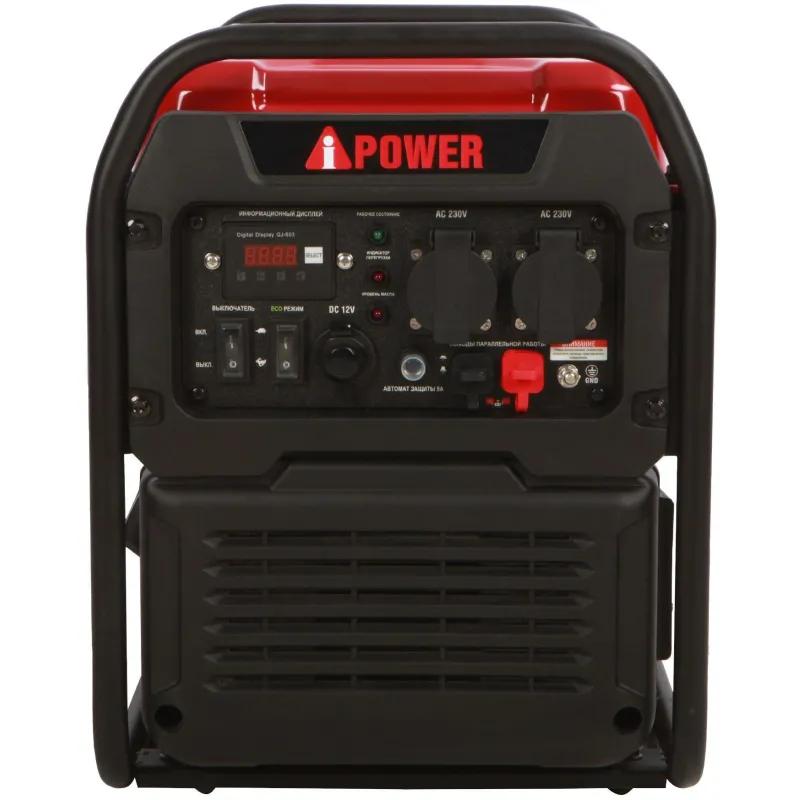 Генератор бензиновый A-iPower A3500i инверторный (20307)Инверторный бензиновый генератор A-iPower A3500i - удачная модель из линейки инверторных генераторов, к которой можно подключить приборы суммарной мощностью 3,5 кВт.К такому генератору можно не опасаясь подключать чувствительную к скачкам напряжения технику: телефоны, планшеты, ноутбуки и др. Инверторный бензиновый генератор может использоваться как во время поездок на природу: в походе, на рыбалке, так и для резервного электропитания в загородном доме.На панели управления генератора выведены 2 стандартные розетки 220В, одна розетка под прикуриватель 12В и USB выход. Многофункциональный дисплей отображает основные параметры работы генератора. Все розетки имеют защиту от влаги и пыли.Экономичный режим работы генератора позволяет снижать расход топлива и экономить ресурс при небольших нагрузках. В таком режиме портативная цифровая электростанция A-iPower работает на одном баке дольше и производит меньше шума за счёт понижения количества оборотов двигателя.Комплектация- Инверторный генератор- Инструкция по эксплуатации- Воронка- Свечной ключВнешний вид и/или характеристики товара могут быть изменены производителем в соответствии с производственным процессом.