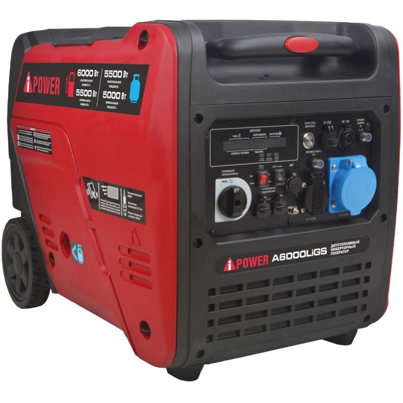 Генератор бензиновый A-iPower A6000LiGs инверторный (20310)Инверторный бензиновый генератор A-iPower A6000LiGS - отличное решение для кемпинга, коротких выездов на природу. Такой генератор обеспечит электричеством портативную технику, телефоны, ноутбуки и небольшие колонки, которые чувствительны к постоянному току. Низкий уровень шума не будет мешать вашему отдыху.Система лёгкого старта позволяет справится с инверторным генератором даже необученному человеку. Не требуется ручной подкачки топлива, изучения сложной системы заслонок. Достаточно заправить генератор, поставить переключатель в нужное положение и запустить двигатель используя любой способ запуска - ручной старт, электростартер, АВР.Инверторный генератор A6000LiGS оснащён USB розеткой 5А для зарядки гаджетов и удобной розеткой 12V прикуривателя. Стандартная розетка 230В имеет защиту от влаги и пыли IP44.Особенность этой модели инверторного генератора заключается в двухтопливной заправке - вы можете использовать в качестве топлива и газ, и бензин.Наличие функции параллельного подключения позволяет объединить мощность 2-х генераторов. Это значительно расширяет возможности подключения устройств с увеличенным потреблением.Современная система выхлопа, глушитель и воздушный фильтр - всё для комфортного использования в любых условиях.Экономичный режим работы генератора позволяет снижать расход топлива и экономить ресурс при не больших нагрузках. В таком режиме портативная цифровая электростанция A-iPower работает дольше и производит меньше шума за счёт понижения количества оборотов двигателя.Обтекаемый корпус из крепкого пластика с ручкой для переноски позволяет легко транспортировать электростанцию. Такая форма хорошо размещается в багажнике авто и не испортит вещи, лежащие рядом.Комплектация- Инверторный генератор- Инструкция по эксплуатации- Ключ свечной- Отвёртка простая- Вилка электрическая (2 шт)- Провода для зарядки АКБ 12В- Воронка- Шланг СУГ с регуляторомВнешний вид и/или характеристики товара могут быть изменены производителем в соответствии с производственным процессом.