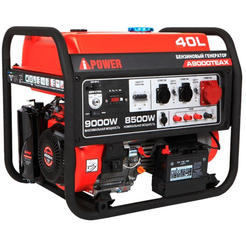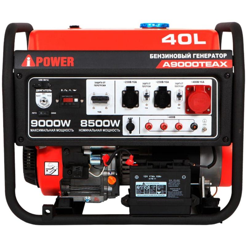 Генератор бензиновый A-iPower A9000TEAX (20122)Бензиновый генератор трёхфазный A-iPower A9000TEAX станет вашим надёжным источником питания при отсутствии электроэнергии. Этот генератор с максимальной мощностью 9 кВт и номинальной мощностью 8,5 кВт работает до 10 часов при 100% нагрузке.Это уникальная модель, которая может выдержать 20,0 кВт пусковой мощности. Такая особенность очень пригодится для подключения техники с электродвигателем, которая требует высокой пиковой мощности при запуске.A-iPower A9000TEAX оснащён компактным гильзованным 4-тактный OHV-двигателем объёмом 459 куб. см с электрическим стартером. На панели управления находится две стандартные розетки 230В/16А, одна силовая розетка 400В/16А, и разъём USB, от которого можно подзарядить смартфон, планшет и другие гаджеты. На цифровой дисплей в режиме реального времени выводятся сведения о работе генератора. Генератор имеет выход для подключения АВР, с возможностью организации источника резервного питания для загородного дома, магазина или кафе.Уникальность этой модели в наличии режима Зима/Лето на панели генератора при подключении АВР для лёгкого запуска в любое время года.Бензиновый генератор A-iPower A9000TЕАХ оснащён автоматом защиты, который при перегрузке предотвратит выход из строя и остановит генератор. Также система защиты предотвратит запуск двигателя при снижении уровня масла.Комплектация- Генератор- Вилка электрическая- Свечной ключ- Воронка- ИнструкцияВнешний вид и/или характеристики товара могут быть изменены производителем в соответствии с производственным процессом.