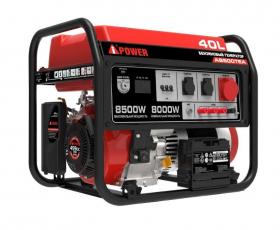 Генератор бензиновый A-iPower A8500TEA (20115)Бензиновый генератор A-iPower A8500TEA станет вашим надёжным источником питания при отсутствии электроэнергии. Этот генератор с максимальной мощностью 8500 Вт и номинальной мощностью 8000 Вт работает до 9.6 часов при 100% нагрузке.A-iPower A8500TEA оснащён мощным гильзованным 4-тактным OHV-двигателем объёмом 459 куб. см с электрическим стартером. На панели управления находятся две стандартные розетки 230В/16А, одна трёхфазная розетка 400В/16А, клеммы для снятия полной мощности, и разъём USB, от которого можно подзарядить смартфон, планшет и другие гаджеты. На цифровой дисплей в режиме реального времени выводятся сведения о работе генератора.Электростартер обеспечивает быстрый и лёгкий запуск двигателя (аккумулятор входит в комплект поставки). К этой модели можно подключить блок автоматики, который сам запустит генератор, если в доме отключится основное электроснабжение.A-iPower A8500TEA оснащён автоматами защиты, которые при перегрузке предотвратят выход из строя и остановят генератор. Также система защиты предотвратит запуск двигателя при снижении уровня масла.Комплектация- Генератор- Вилка электрическая- Свечной ключ- Воронка- ИнструкцияВнешний вид и/или характеристики товара могут быть изменены производителем в соответствии с производственным процессом.
