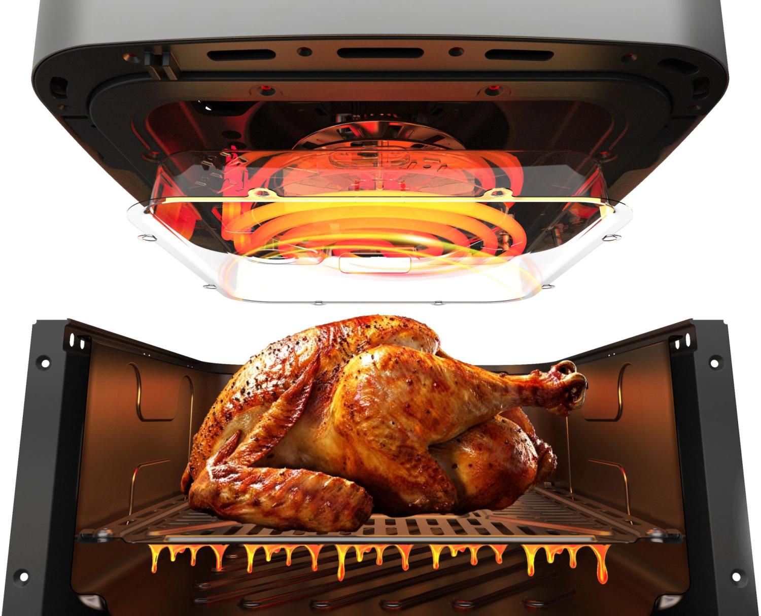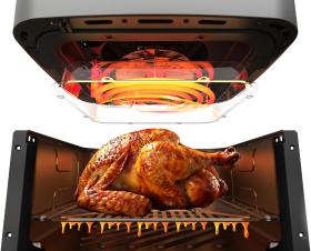 | Описание | Благодаря системе циркуляции горячего воздуха 360°, продукты обжариваются равномерно, получаясь нежными внутри и с хрустящей корочкой снаружи, без использования масла. |