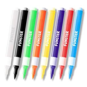 Аквагрим для лица и тела FUNSTER позволит ребёнку примерить на себя новые интересные образы и будет незаменим не только на празднике или карнавале, но и в повседневных играх.Аквамаркеры имеют удобную круглую форму. Длина корпуса - 140 мм, диаметр - 12 мм. Благодаря мягкому наконечнику-кисти процесс нанесения грима превращается в игру, грим наносится на кожу легко и быстро. Яркие и насыщенные чернила сохранят красочные узоры на лице и теле до конца игры или праздника, а после легко смоются водой. Чернила имеют нетоксичный, натуральный состав и являются абсолютно безвредными для кожи ребёнка. В набор входят 8 цветов: голубой, оранжевый, жёлтый, розовый, зелёный, фиолетовый, чёрный, белый.