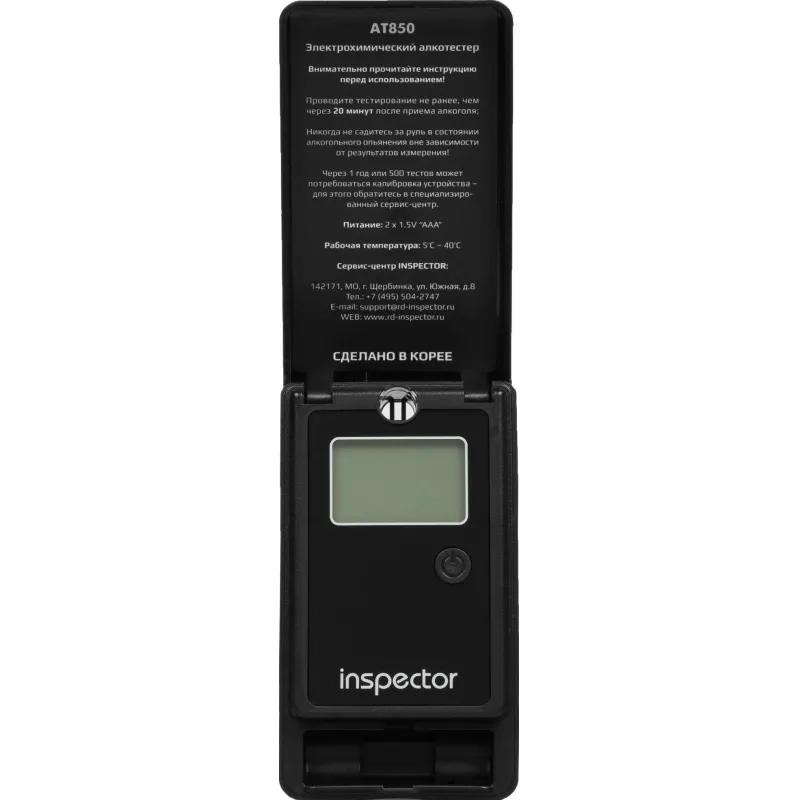 Алкотестер Inspector AT850<br><br>Алкотестер Inspector AT850 электрохимический черный. Практичность, высокая точность определения, надежность и безопасность в использовании - все это и многое другое объединяет алкотестер Inspector AT850. Благодаря этому маленькому устройству вы сможете с высокой точностью определить уровень содержания алкоголя в крови. Работает прибор от батареек AA типа.<br><br>Внешний вид и/или характеристики товара могут быть изменены производителем в соответствии с производственным процессом.