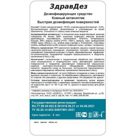 Средство 2 в 1: кожный спиртовой антисептик и дезинфекция поверхностей с пролонгированным эффектомСредство «Здравдез» представляет собой готовую к применению прозрачную бесцветную жидкость со специфическим запахом изопропилового спирта и применяемой отдушки без посторонних механических включений.
