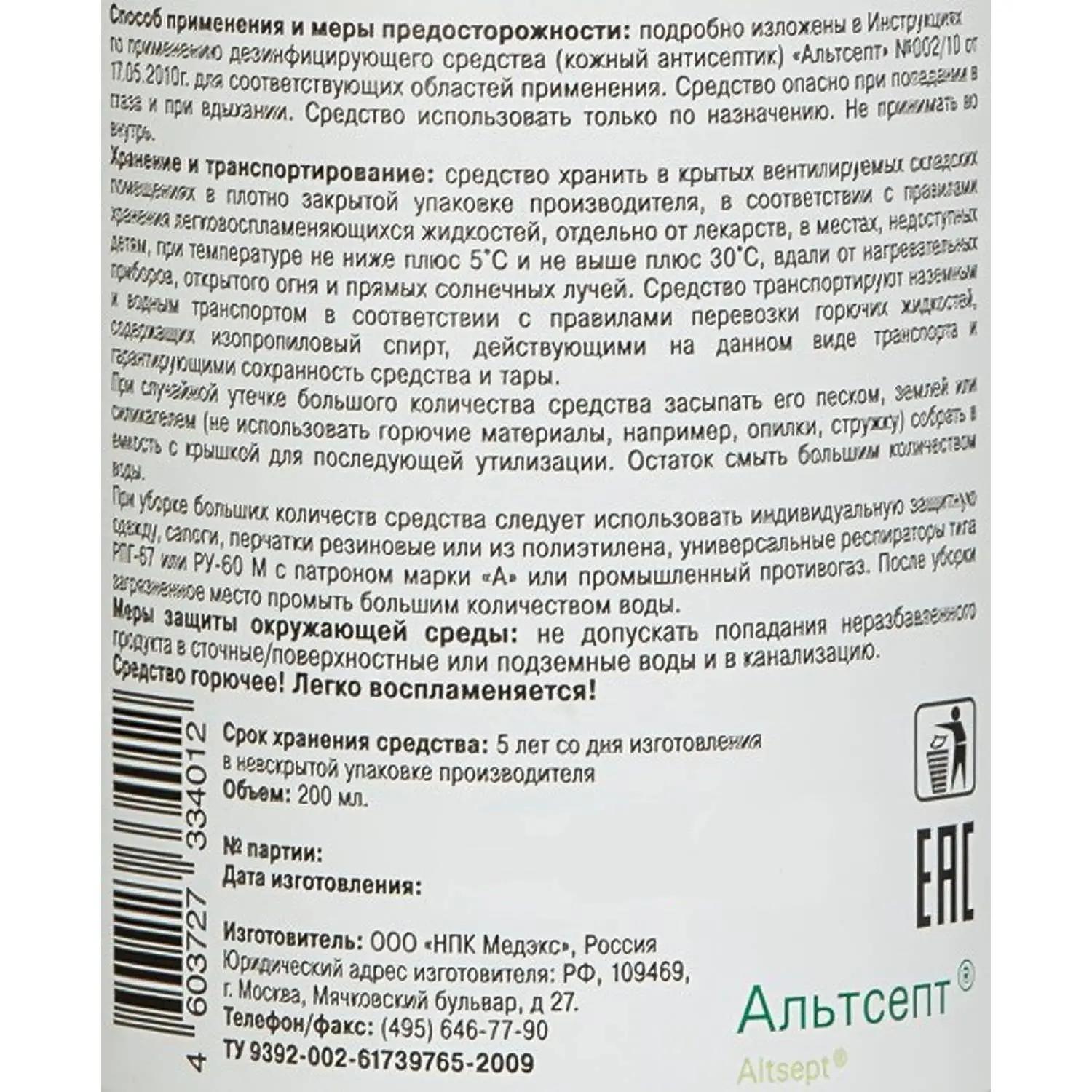 Антисептик кожный Альтсепт 200 мл, спрей / 4dealer.ru