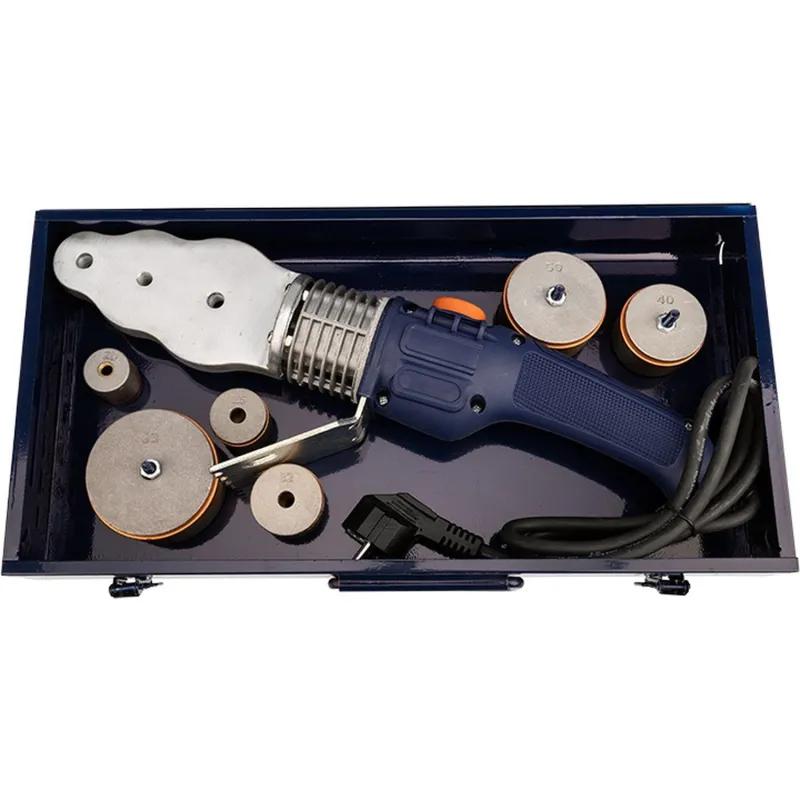 Аппарат сварочный для труб 1000 Вт Rexant DJ-L12 63 (11-1001)<br><br>Аппарат для раструбной сварки Rexant применяется для установки и обслуживания коммуникаций из полипропиленовых труб во всех сферах: бытовой, производственной, ремонтной. <br>Мощность 1000 Вт делает возможным предельно быстрый нагрев до рабочей температуры. В зависимости от характеристик материала она может колебаться от 50 до 300 °C.<br>Сварочный аппарат поставляется в металлическом чемоданчике, что упрощает его транспортировку и хранение, так как не занимает много места. <br>Комплектация включает 6 насадок, покрытых тефлоном, диаметром от 20 до 63 мм. <br>Модель оснащена индикацией включения и изменения режима.<br><br>Особенности:<br>• Регулятор рабочей температуры: термостат <br>• Диапазон рабочей температуры: 50-300 градусов<br>• Мощность: 1000 Вт<br>• В комплекте 6 насадок, диаметром: 20, 25, 32, 40, 50, 63 мм <br>• Тип сварочного сопла: нормальный<br>• Покрытие греющих элементов: тефлоновое<br><br>Внешний вид и/или характеристики товара могут быть изменены производителем в соответствии с производственным процессом.