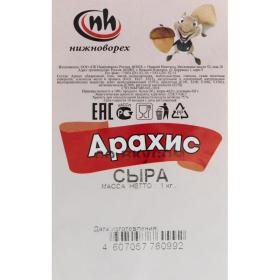 Арахис жареный со вкусом сыра 1 кг<br><br>Арахис жареный Нижноворех — это вкусный и полезный перекус, который понравится всем. Этот арахис жарится до золотистого цвета, что придаёт ему неповторимый аромат и хрустящую текстуру. Он станет основой для домашнего арахисового масла, выпечки, салатов или просто приятным перекусом в течение дня. Арахис богат белком и полезными жирами, что делает его ценным источником энергии и питательных веществ.<br>Состав: арахис обжаренный, соль, масло подсолнечника, мальтодекстрин, глюкоза, молочная сухая сыворотка, усилители вкуса и аромата (Е621, Е627, Е631), натуральные и идентичные натуральным вкусоароматические вещества, агент антислеживающий (Е551), красители (Е141, Е100, Е160, 150с), антиокислитель (Е300), регулятор кислотности (Е270).<br>Пищевая ценность в 100 г продукта: белки — 28 г, жиры — 44.9 г, углеводы — 9 г.<br>Энергетическая ценность: 2238.7 кДж/534.7 ккал.<br>Условия хранения: хранить в сухом месте при температуре не выше +25 С и относительной влажности воздуха не более 70%.<br><br>Внешний вид и/или характеристики товара могут быть изменены производителем в соответствии с производственным процессом.