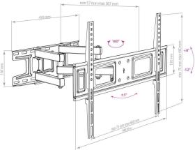 | Описание | Универсальный - телевизор на кронштейне можно наклонить, повернуть и сдвинуть к стене. Легкий монтаж телевизора - благодаря наличию съемной монтажной пластины. Широкое настенное основание. Корректировка экрана ±3°. Водяной уровень. |