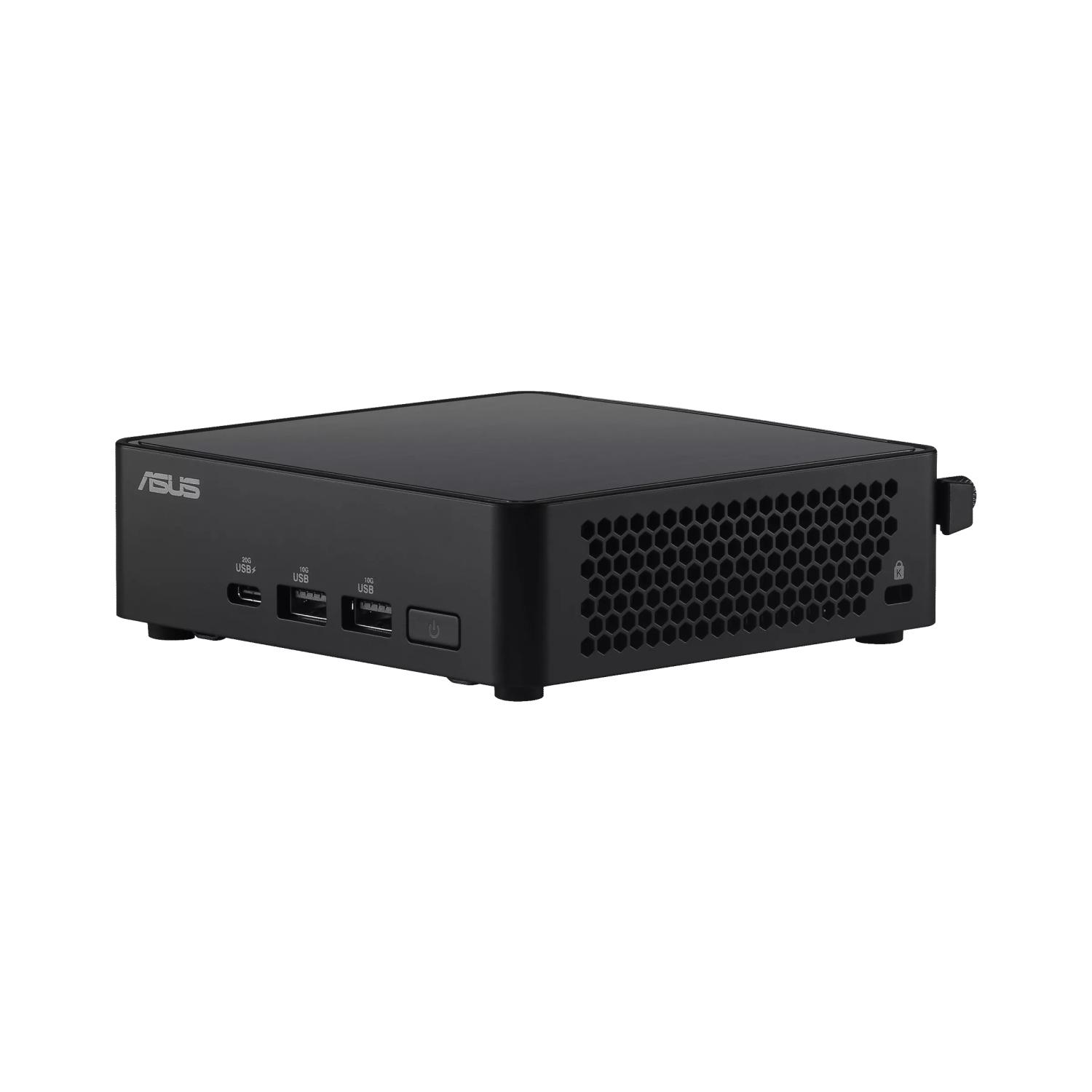 ASUS NUC 14RVK — это компактное компьютерное решение в формате неттопа, которое сочетает в себе современный дизайн и функциональность. Устройство оснащено фирменным логотипом ASUS и выполнено в стильном черном цвете, что делает его отличным выбором для любого рабочего пространства.