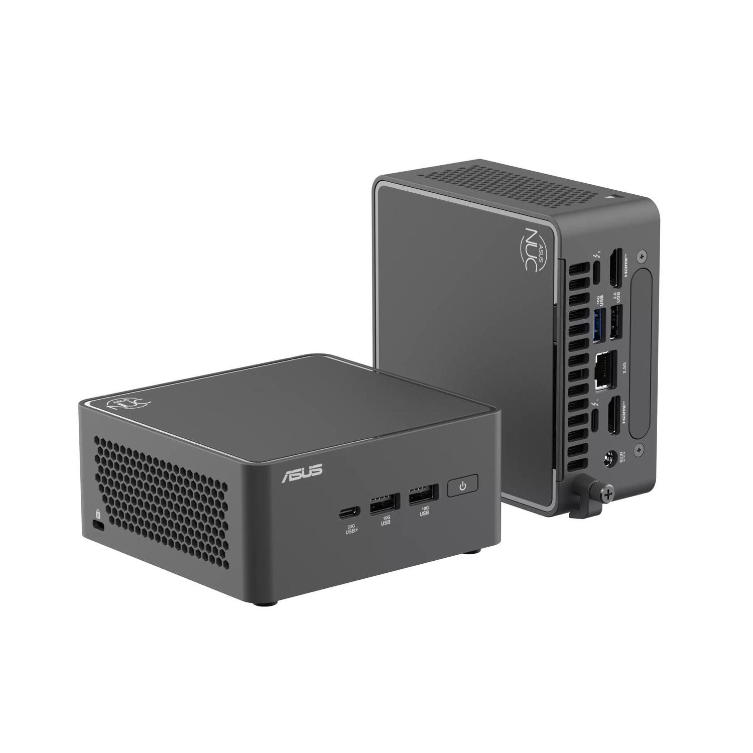 ASUS NUC 15CRH — это компактное компьютерное решение в формате неттопа, которое сочетает в себе высокую производительность и минималистичный дизайн. Устройство выполнено в черном цвете с фирменным логотипом ASUS, что делает его стильным дополнением любого рабочего пространства.