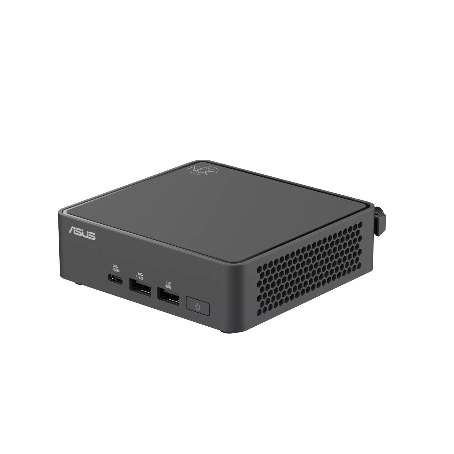 ASUS NUC 15CRK представляет собой компактное компьютерное решение в формате неттопа, сочетающее в себе высокую производительность и минималистичный дизайн. Устройство поставляется в черном цвете с фирменным логотипом ASUS, что делает его стильным дополнением любого рабочего пространства.