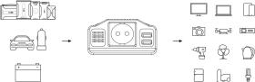 | Особенности | Подключение напрямую к аккумулятору или в авторозетку. При использовании автомобильного инвертора через прикуриватель автомобиля, суммарная мощность нагрузки не должна превышать 150 Вт. При подключении к клеммам аккумулятора суммарная мощность нагрузки 200 Вт. |