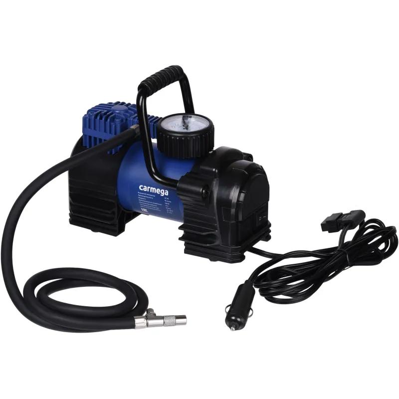 Компрессор автомобильный Carmega 40 л/мин (CARM-AC-40)Мощный компрессор Carmega AC-40 накачает колёса как легкового авто, так и кроссовера. Оптимально для колёс R14-R17. В комплекте предусмотрен набор переходников для накачивания резиновых изделий (мяч, надувной матрас, лодка).Преимущества- Металлический корпус защищает от перегрева.- Имеется спускной клапан (дефлятор) для точной регулировки давления.Комплектация: компрессор поршневой, кабель питания, набор переходников, сумка для хранения, руководство по эксплуатации.