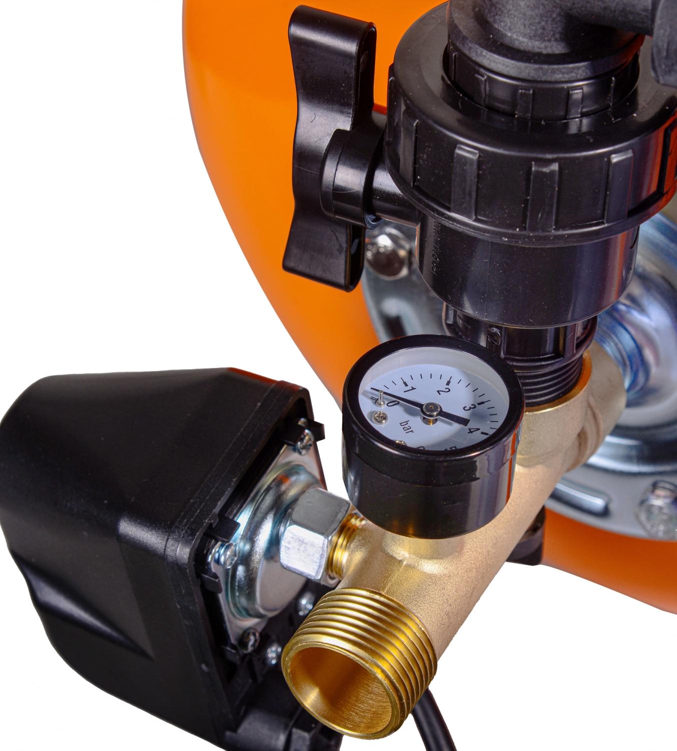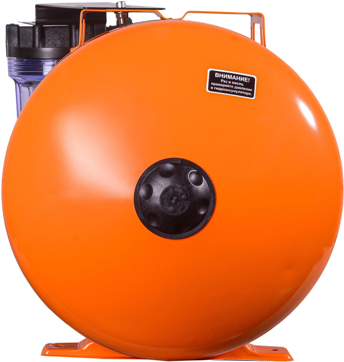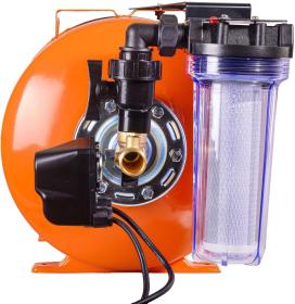 Комплектация "Гидроаккумулятор; Реле давления с кабелем питания для насоса - 1 шт.; Фильтр для очистки воды - 1 шт.; Соединительная муфта - 1 шт.; Манометр - 1 шт.; Паспорт; Упаковка.