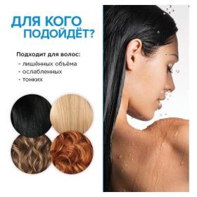 Специально разработанная формула на основе масел ши и кокоса питает тонкие ослабленные волосы и увеличивает объем, а натуральные экстракт гуавы и маракуйи придают им эластичность и блеск.