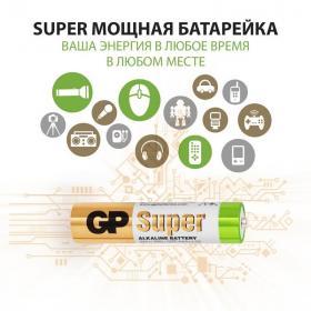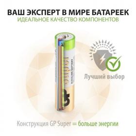 Батарейка ААА мизинчиковая GP Super (4 штуки в упаковке)<br>Батарейки GP меняют дизайн — потребительские свойства, модели, артикулы, весогабаритные характеристики, тип упаковки остаются без изменений.<BR><BR><!--noindex-->Внешний вид и/или характеристики товара могут быть изменены производителем в соответствии с производственным процессом.<!--/noindex-->