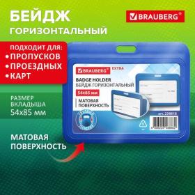 Бейдж горизонтальный (54х85 мм), синий, МАТОВАЯ ПОВЕРХНОСТЬ, BRAUBERG EXTRA, 238818 / 4dealer.ru