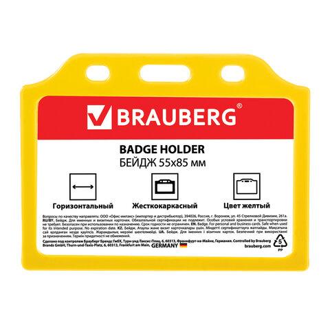 Бейдж горизонтальный жесткокаркасный (55х85 мм), без держателя, ЖЕЛТЫЙ, BRAUBERG, 235743 / 4dealer.ru