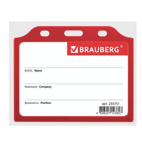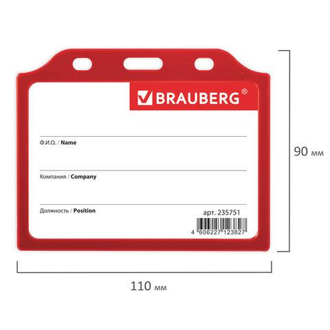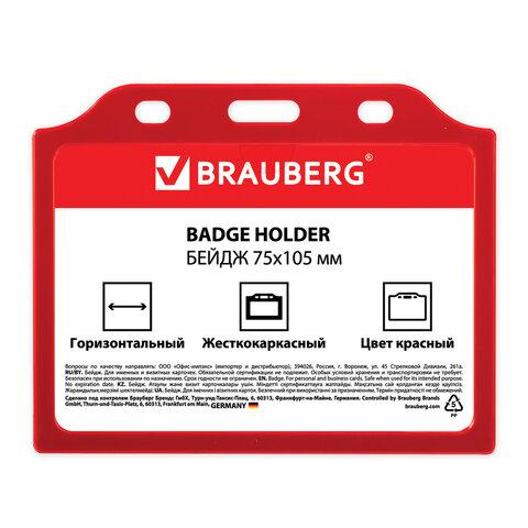 Бейдж горизонтальный жесткокаркасный (75х105 мм), без держателя, КРАСНЫЙ, BRAUBERG, 235751 / 4dealer.ru