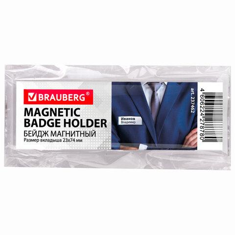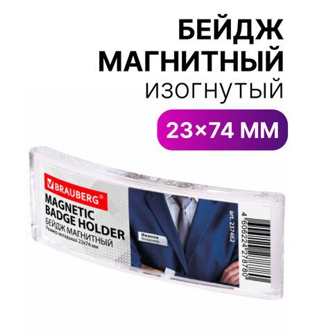 Бейдж магнитный изогнутый 23х74 мм, BRAUBERG MAGNETIC, 237462 / 4dealer.ru