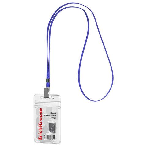Вертикальный бейдж ERICH KRAUSE для именной карточки предназначен для идентификации сотрудников в компаниях, а также на семинарах, тренингах, презентациях и других мероприятиях.Бейдж вертикальный в комплекте с лентой. Материал бейджа - ПВХ, цвет - прозрачный. Размер вставки составляет 62х91 мм. Лента синего цвета, изготовлена из полиэстера, имеет металлический зажим. Ширина ленты составляет 12мм. длинна 420мм. Бейдж подходит для ношения именных карточек и пропусков.
