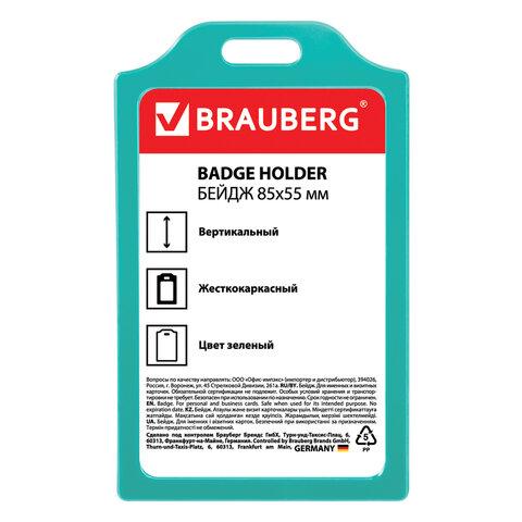Бейдж вертикальный жесткокаркасный (85х55 мм), без держателя, ЗЕЛЕНЫЙ, BRAUBERG, 235747 / 4dealer.ru